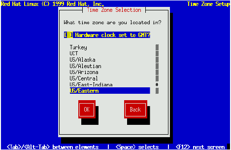 Select the time zone your system will be operating in from the list, and press Enter.